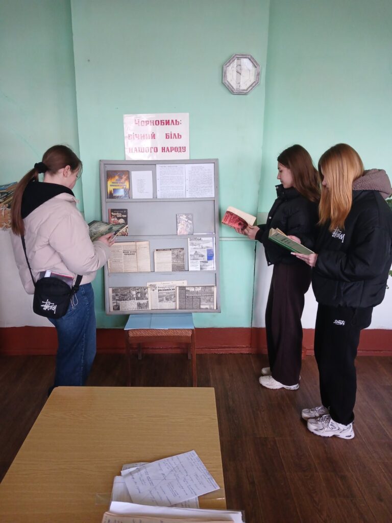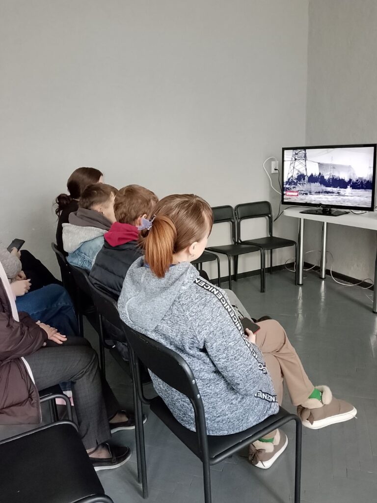 В гуртожитку коледжу студенти переглянули фільм “Від вибуху до окупації”, ознайомились з виставкою літературних джерел про Чорнобильську трагедію недбалості 1986 року, а дії рф сьогодні – це свідомий ядерний шантаж.