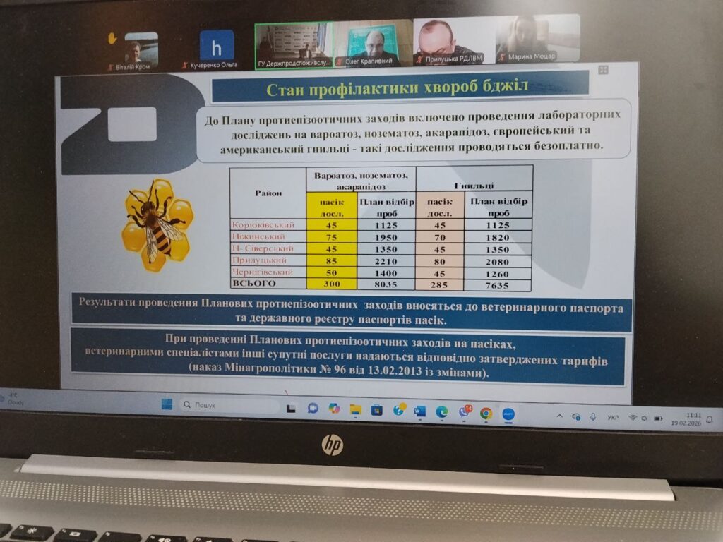 19 лютого 2026 року викладачі Борзнянського аграрного фахового коледжу Майстат Тетяна Вікторівна та Кучеренко Ольга Володимирівна долучилися до онлайн-наради для пасічників та сільгоспвиробників, організованої Головним управлінням Держпродспоживслужби в Чернігівській області спільно з Департаментом агропромислового розвитку Чернігівської обласної державної адміністрації.