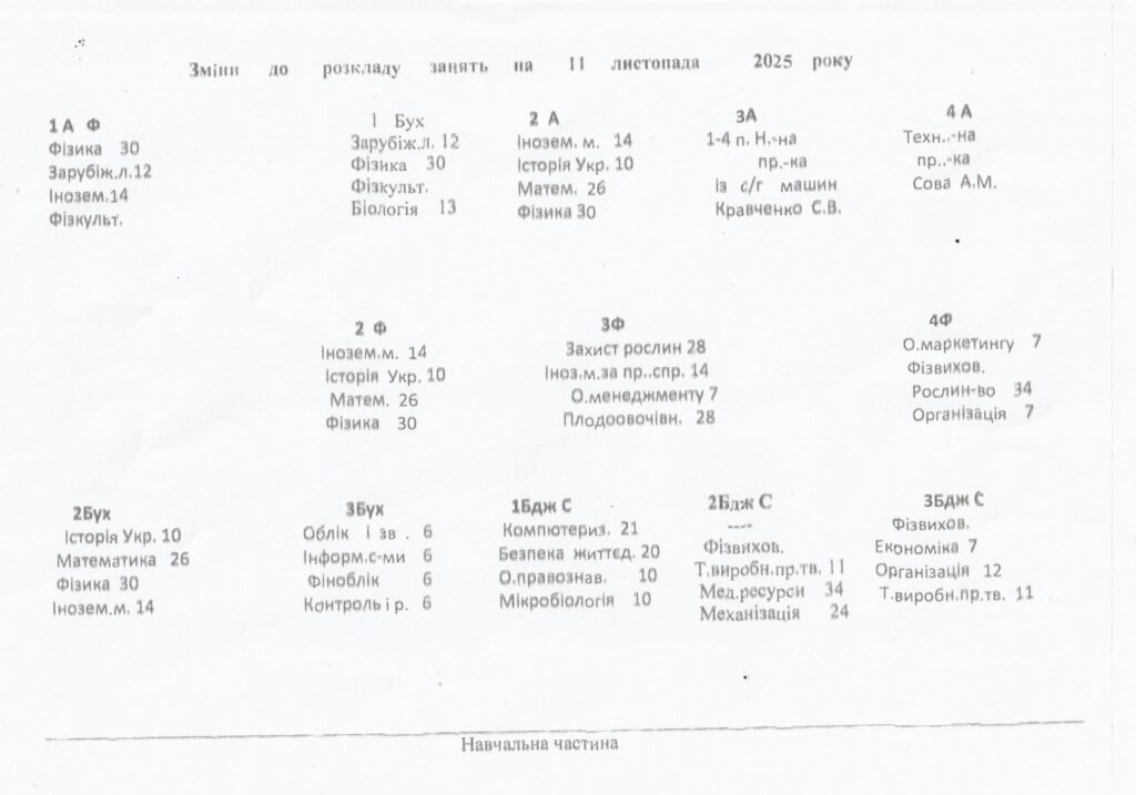 Зміни до розкладу 11.11 2025
