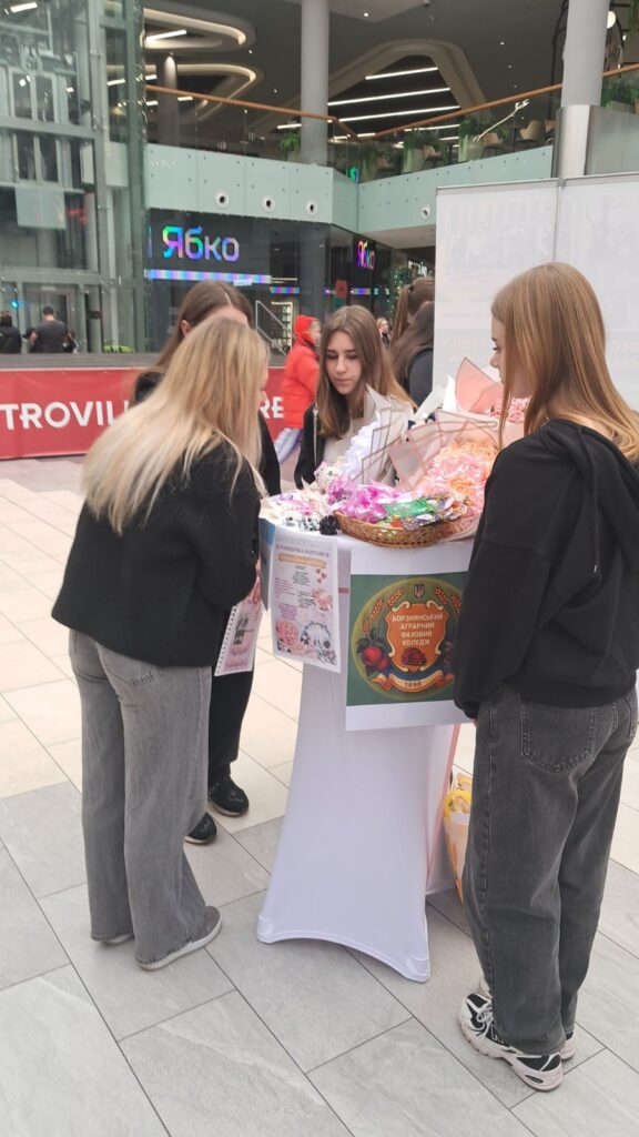 Нашу мінікомпанію представляли — Олександра Самогран, Тетяна Зайко, Анастасія Кучура. Під керівництвом Ляшиченко Лариси команда нашого закладу гідно представила власну продукцію на базі провідного торговельного центру столиці.